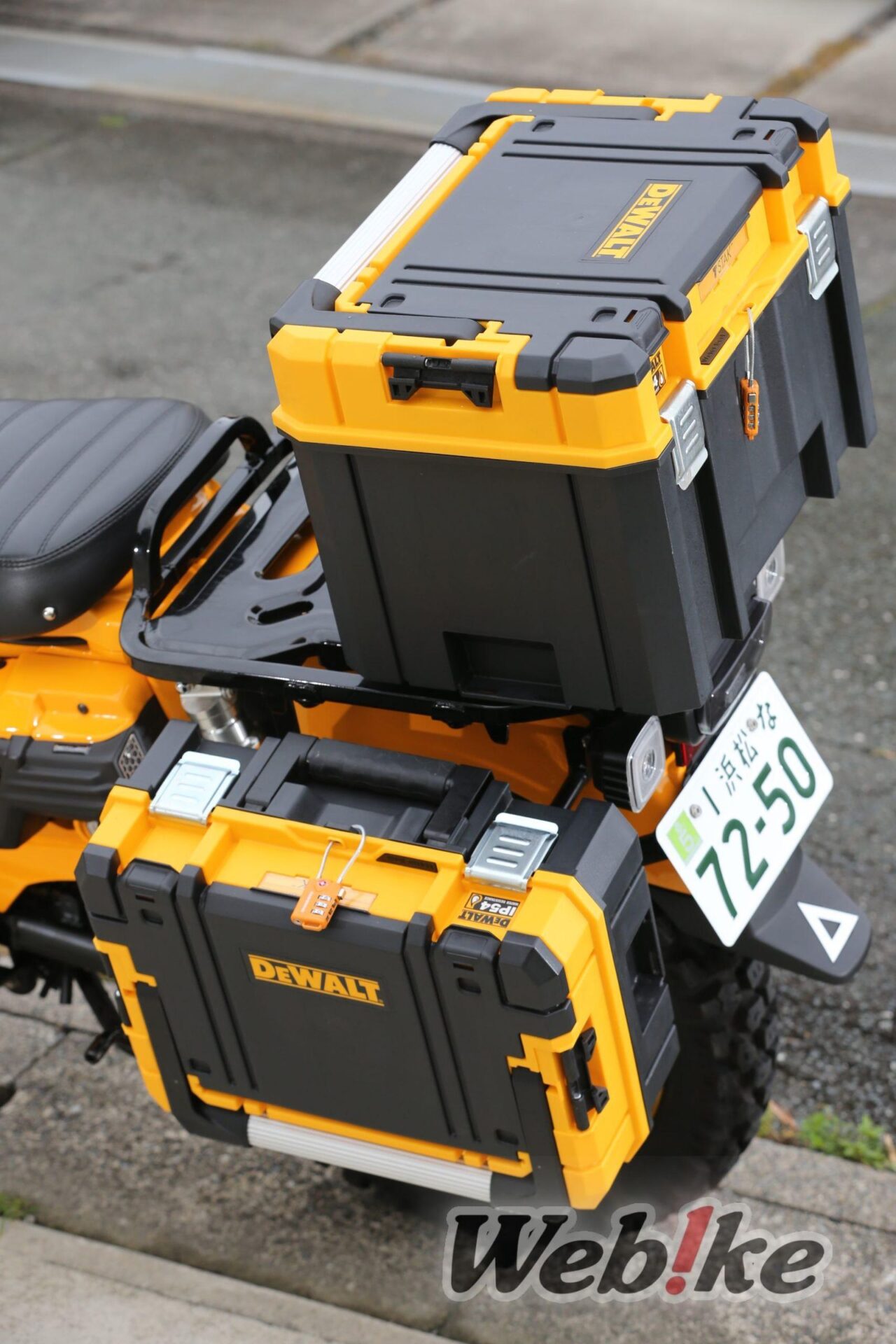 กล่องเครื่องมือ DEWALT ที่ติดตั้งไว้ที่ด้านหลังช่วยให้ทนทาน กันน้ำ และมีพื้นที่เพียงพอสำหรับการเดินทางระยะไกล เหมาะสำหรับการประชุม Cub ที่จัดขึ้นไกลจากบ้าน