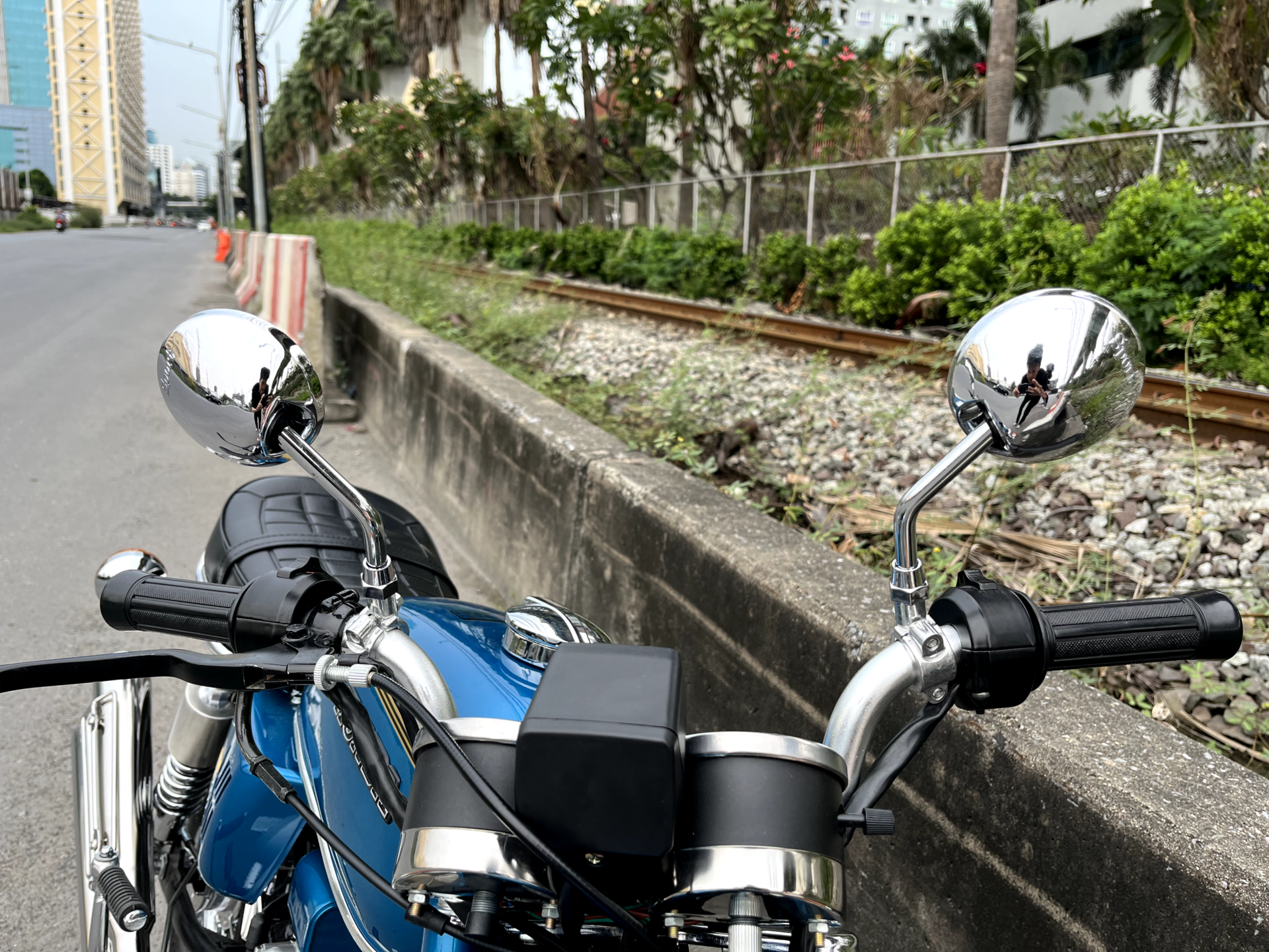 ความเงางามของโครเมียม: ทั้งบังโคลนหน้า-หลัง กระจกมองหลัง และขอบล้อซี่ลวด ถูกปัดเงามาจนวาววับ ช่วยขับเน้นความหรูหราแบบคลาสสิก