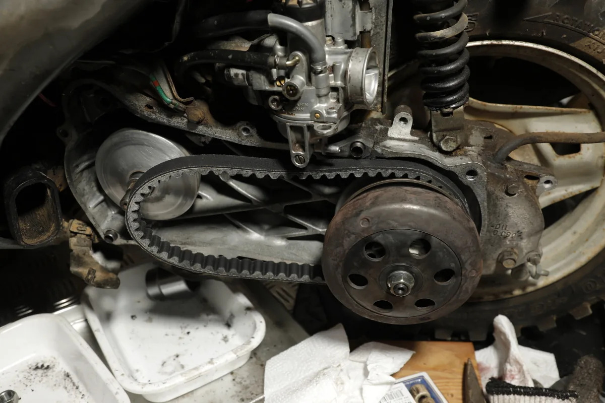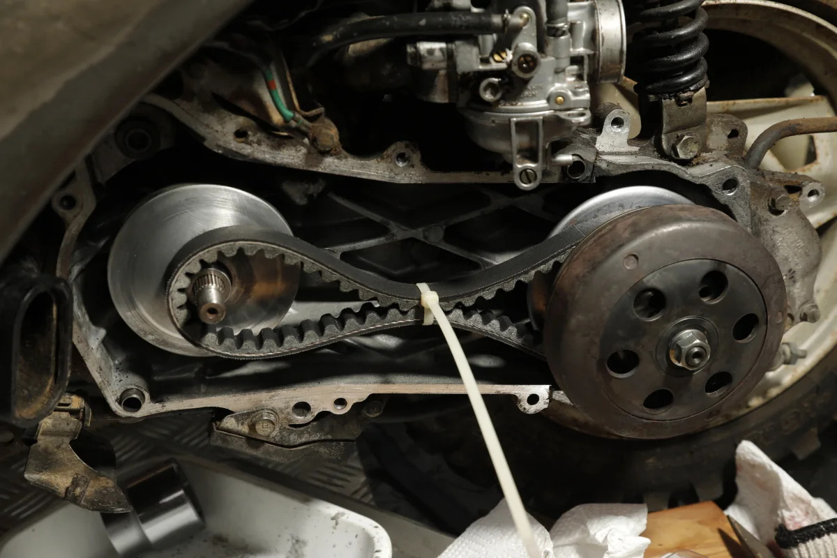 สายพานขับเคลื่อนของสกูตเตอร์ส่งกำลังโดยการเลื่อนไปมาระหว่างร่องรูปตัววีของรอก และแตกต่างจากโซ่ที่หมุนไปพร้อมกับการขบกับเฟือง สายพานขับเคลื่อนจะส่งความเร็วสูงสุดลดลงเนื่องจากการสึกหรอ โดยทั่วไปแล้วระยะเวลาในการเปลี่ยนจะขึ้นอยู่กับระยะทาง แต่ขึ้นอยู่กับวิธีการใช้งานรถ อาจสึกหรอเร็วกว่าที่คาดไว้ และในบางกรณีอาจขาด ทำให้ไม่สามารถขับรถได้ การเปลี่ยนสายพานขับเคลื่อน นอกเหนือจากการเปลี่ยนรอกหน้าและหลัง ลูกตุ้มถ่วงน้ำหนัก และคลัตช์แบบแรงเหวี่ยงแล้ว ยังเป็นการบำรุงรักษาชุดขับเคลื่อนของสกูตเตอร์ให้เสร็จสมบูรณ์