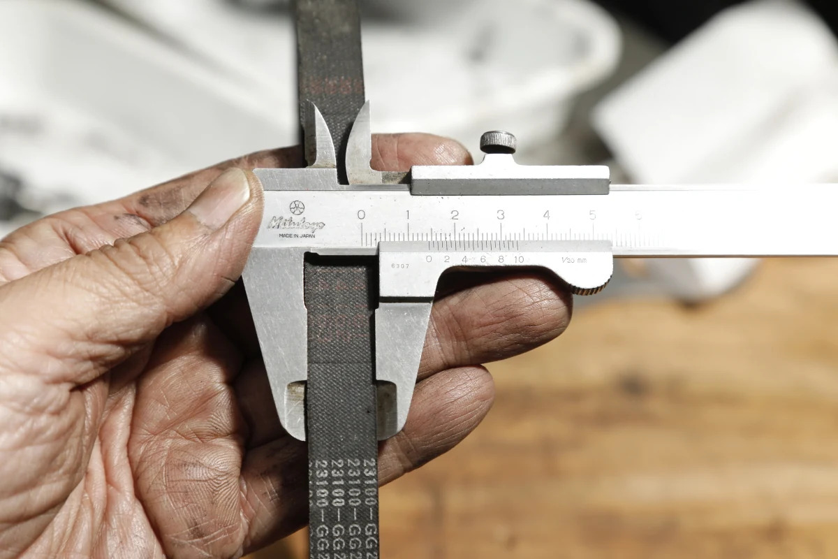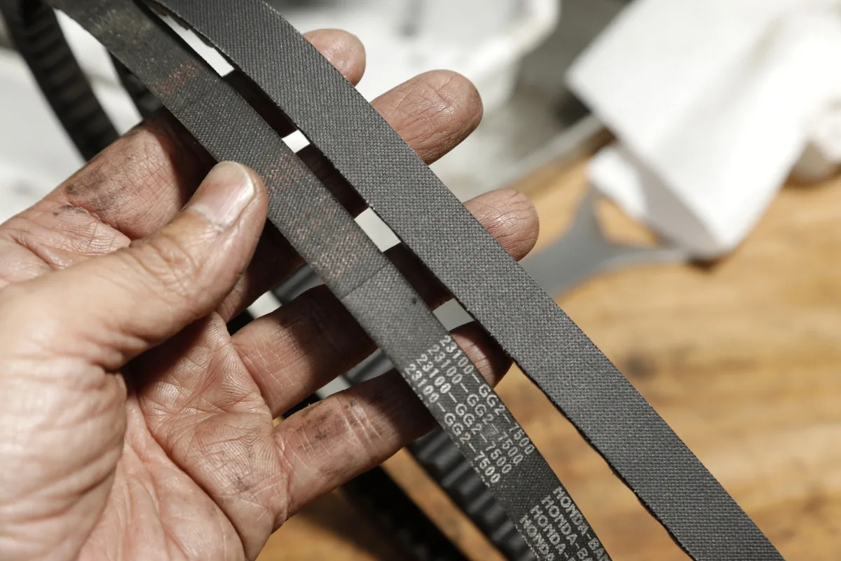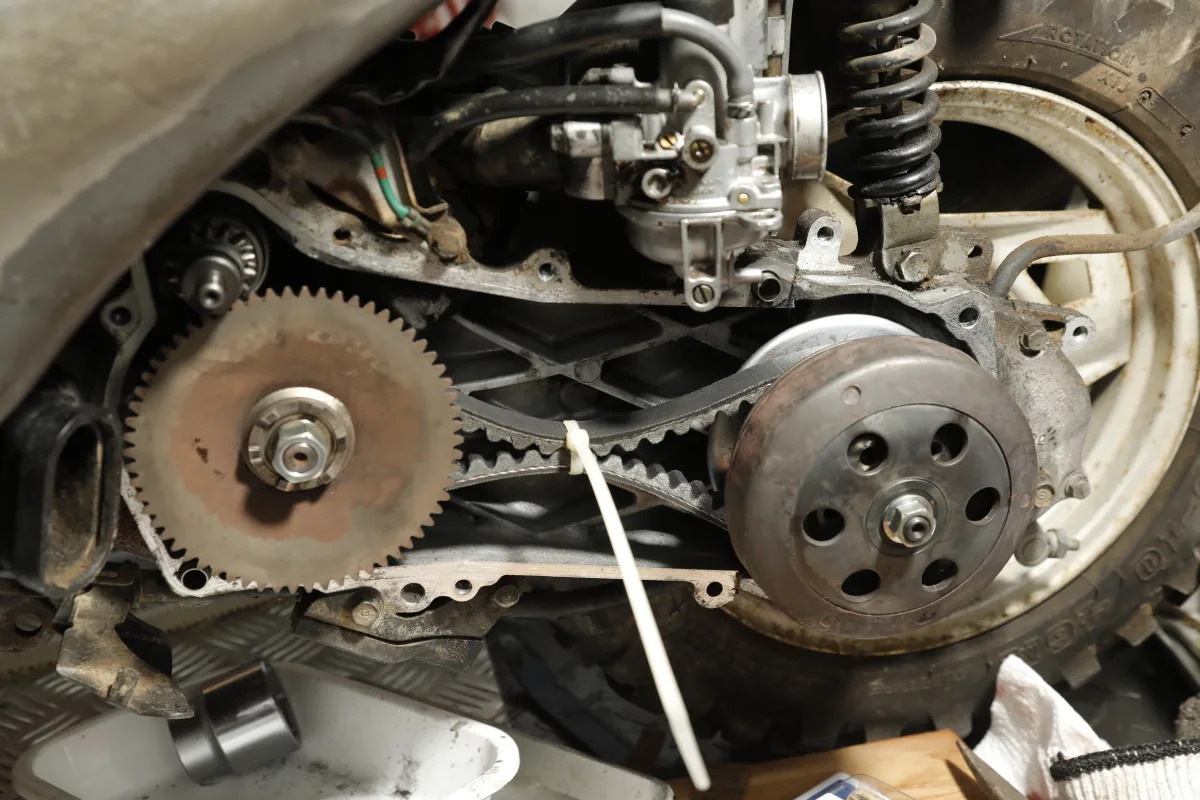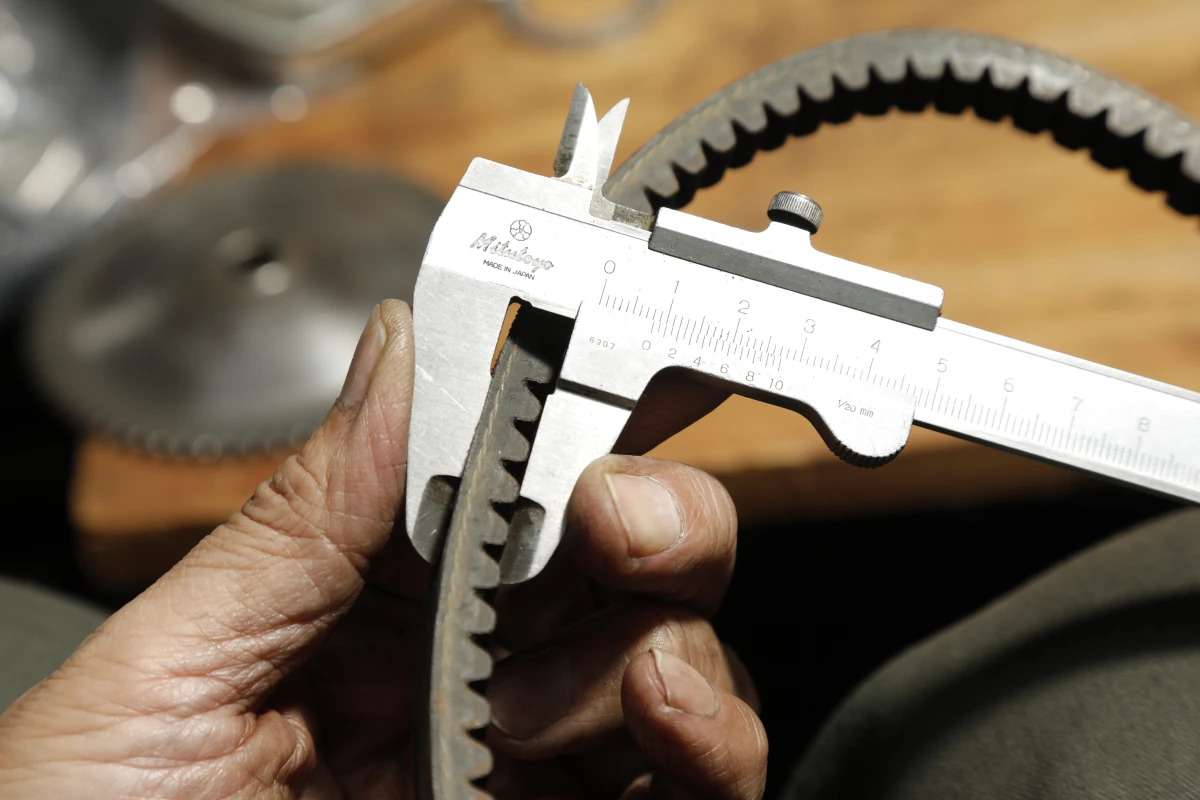 สายพานสึกจนเหลือความกว้าง 14.5 มม. ซึ่งแคบกว่ารุ่นใหม่ 1 มม. อยู่ 1 มม. แม้จะไม่ใช่รุ่น DIO แต่บางรุ่นก็มีขีดจำกัดการสึกหรอของสายพานไว้ที่ 1 มม. ดังนั้นจึงเป็นเรื่องสมเหตุสมผลที่จะสันนิษฐานว่า ถึงเวลาต้องเปลี่ยนสายพานแล้ว